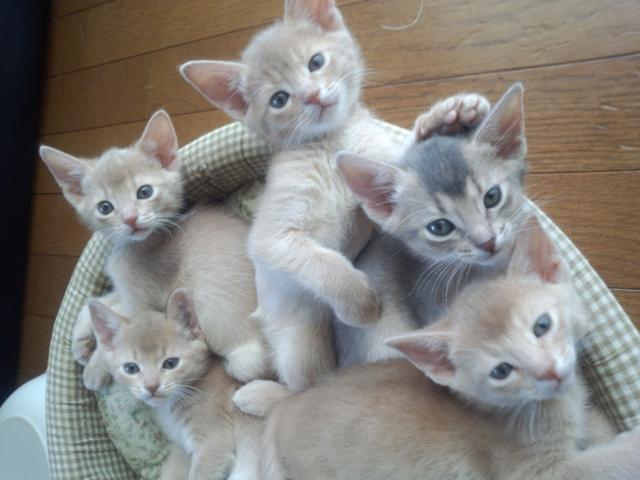 3/27生まれのアビシニアンの仔猫5兄妹のうち