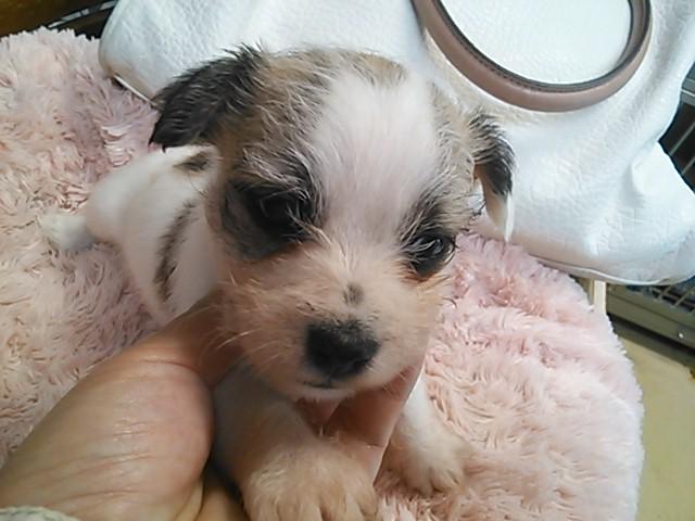 現在は大変小ぶりなジャックに見えますが マルチーズの抜け毛のない毛質を受け継いでいますのでお手入れ等もしやすいと思います。