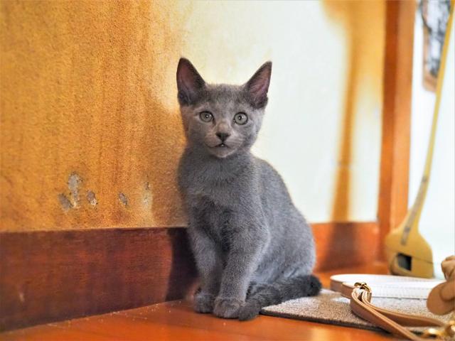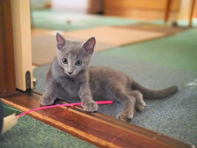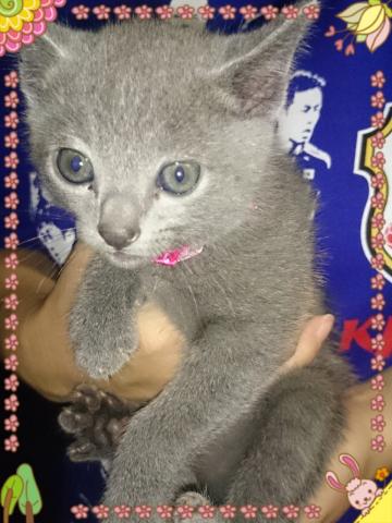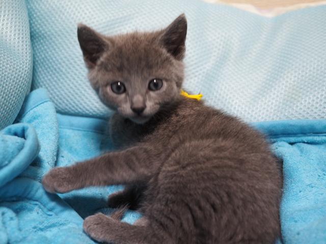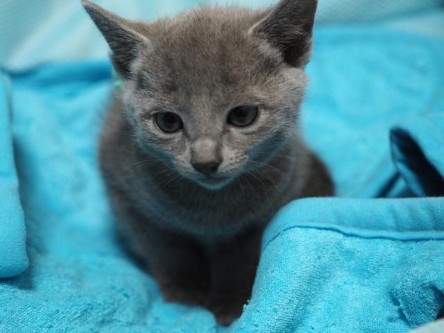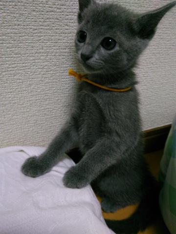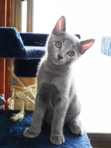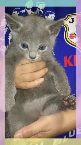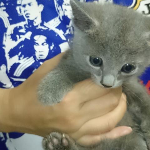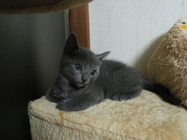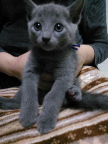 我が家で生まれた、可愛いいロシアンブルーの男子です。昼間は部屋中、駆け回って居て とても元気いっぱいな猫ちゃんです。
