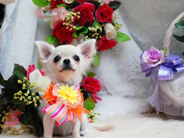 小さくてアップルヘッド、まさに理想のお顔のチワワちゃん。お父さんJKCチャンピオン!とても人なつっこく尻尾フリフリ愛嬌抜群です♪