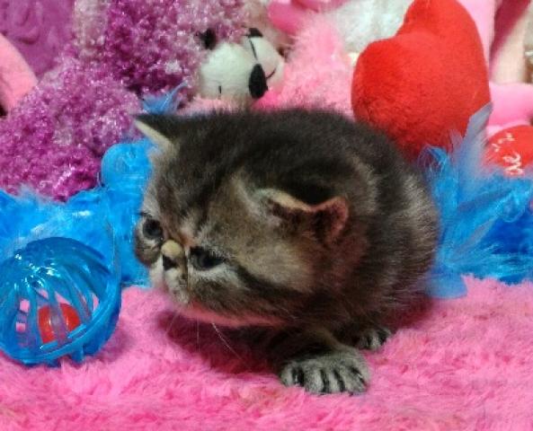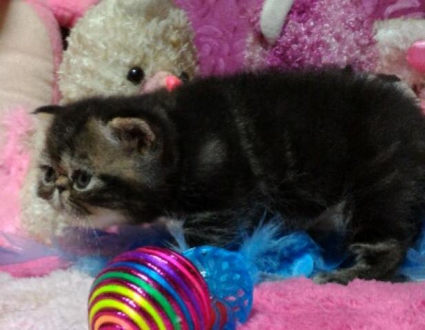 潰れたお顔に大きな目で鼻位置も高い特選猫ちゃん・大人しく育っています。