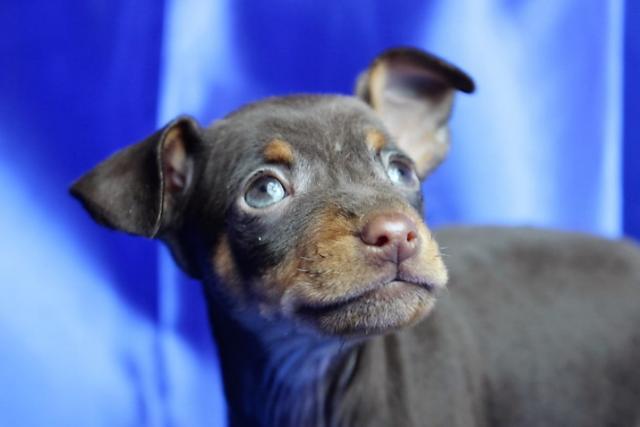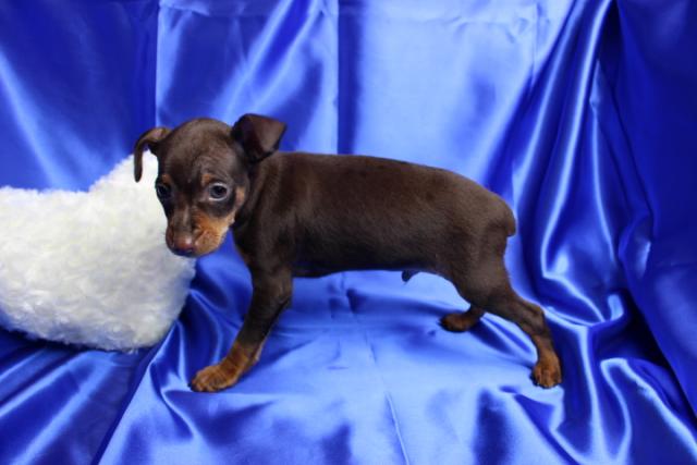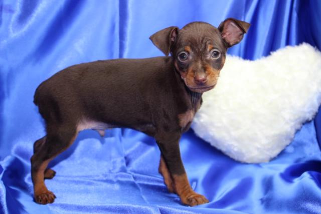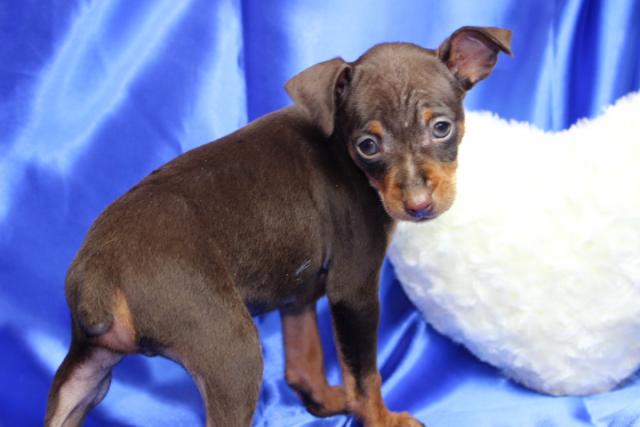 ミニチュアピンシャ―(チョコタン)の男の子。ママはチャンピオン直子の超良血統。チャンピオン