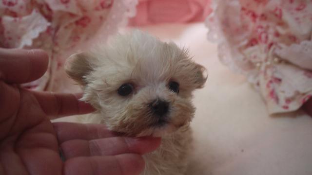 メチャメチャ可愛い子です。お目目パッチリお鼻短く見たらだれでも、欲しくなるとおもいます。お父さんもお母さんもテーカップサイズですので、この子も小さいサイズに収まると思います。