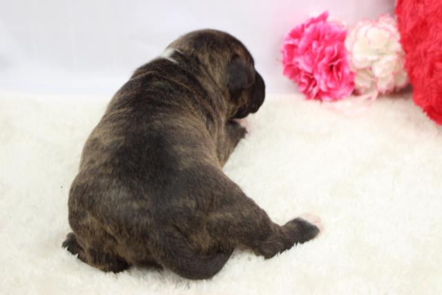 このブリンドルの男の子は1番くいしん坊で兄弟のご飯も食べちゃうくらいです♪
