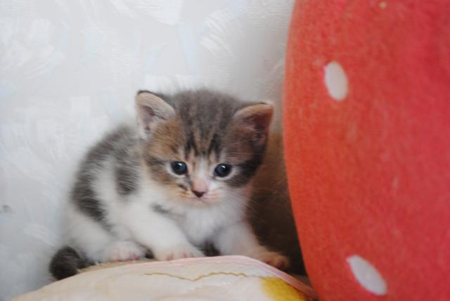 離乳が始まったばかりの仔猫です。