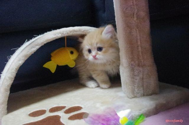 くるくると動き回ってよく遊び、よく食べ、よく出す元気な子です。
