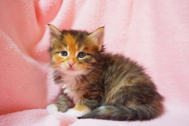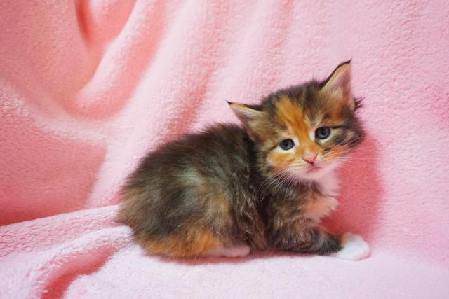 靴下模様の可愛らしい三毛の女の子です。