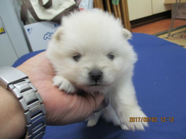 父親犬ハク君 2015.11.8産まれ 体重は2.1kg 毛色はホワイトです。
