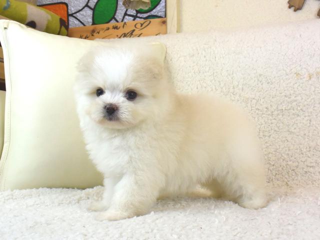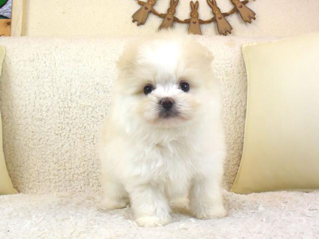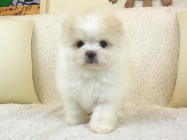 クリームとホワイトっぽい色合いもまたGOOD!!それでも色素はばっちりなのでご安心を^^ポメラニアンとマルチーズを2頭飼いたいなぁ、と思っているそこのあなた!!ポメチーズ君ならそんなお悩みを解消できます?!とりあえず、気になられた方はお問い合わせくださいね♪ >