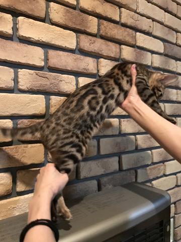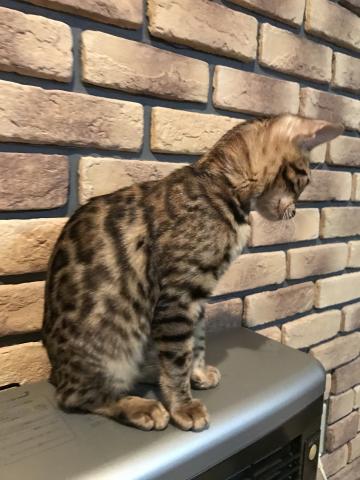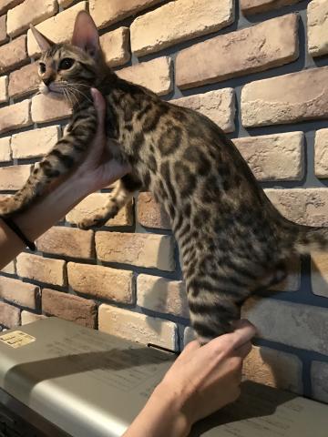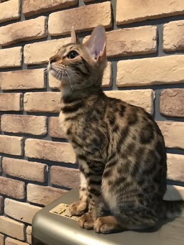 ブラックマーキングが綺麗に出て、グリッターがキラキラで、手触りもシルキーで気持ちいいです。体も大きく、筋肉質で野性味溢れる女の子です♪性格も良く、とても甘えん坊です♪