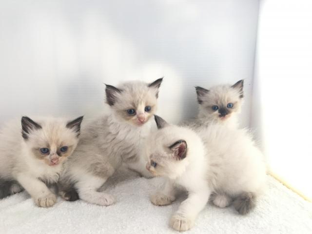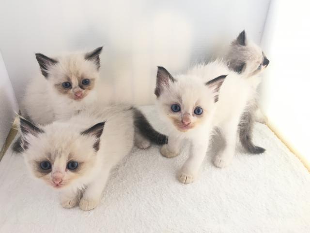 シールポイントミテッドとバイカラーのメス3匹、オス1匹の4匹兄妹です。