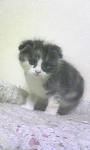 健康で可愛いスコティシュフォールドの子猫がいます。