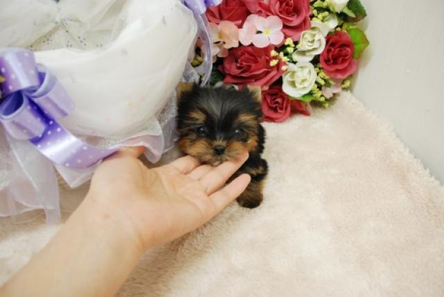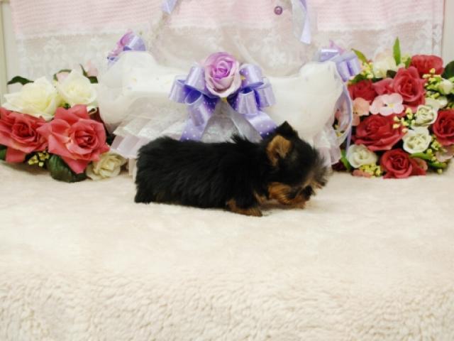 お顔の柄もハッキリしている小さなヨーキーちゃんおめめも大きく将来的に可愛くなる事間違いなし♪体系的にも胴も足もかなり短く詰まっています!4枚目の写真これでも立ってます(笑)