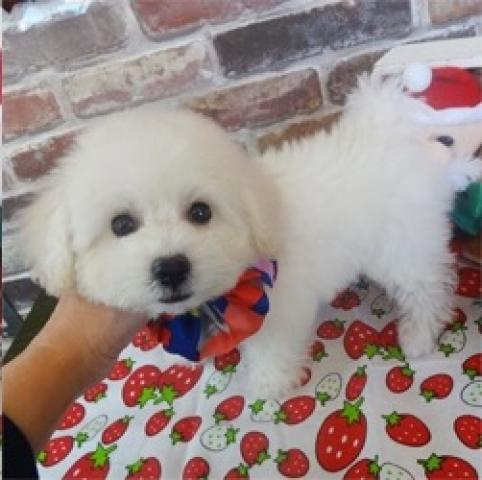 真っ白でふわふわコロコロ体型のビションフリーゼの女の子(*´ω`*)