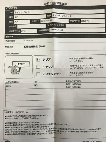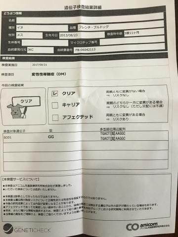 両親ともに変性性脊髄症(DM)の遺伝子検査もクリアです!