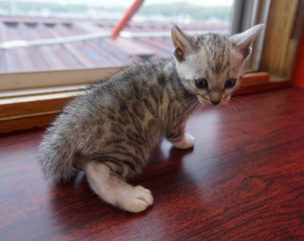 仔猫の性格は甘えん坊で大人しく、まだお外の世界がこわいと思っていますが、徐々に慣れていくと思います。
