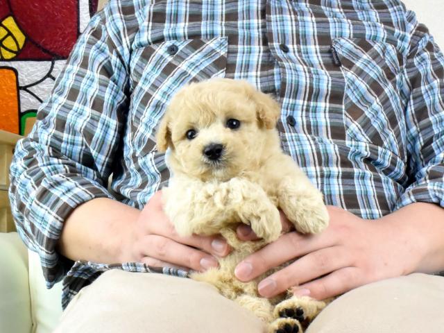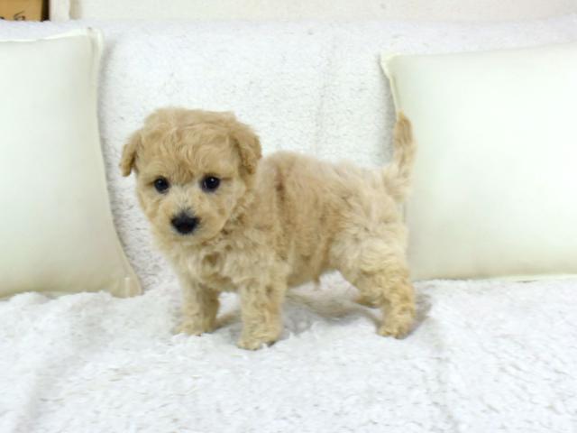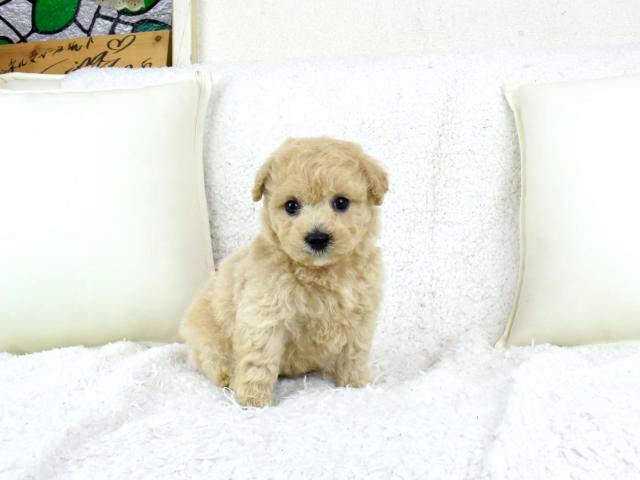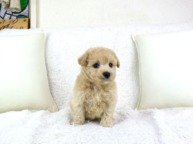 容姿もプードルのくるくるっとした可愛い毛並みと、マルチーズのまん丸お顔に大きなお目目をきっちり受け継いで、見た目も完璧な子犬です!
