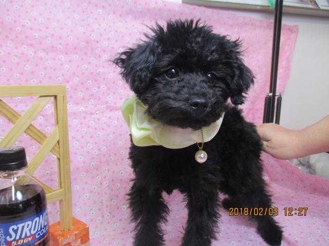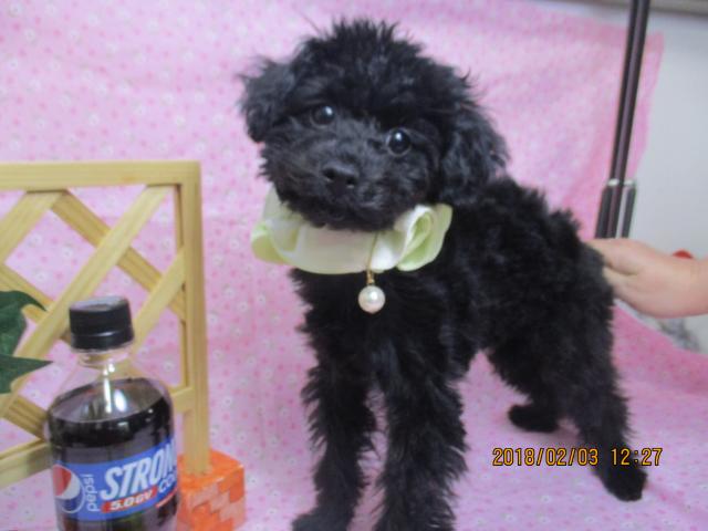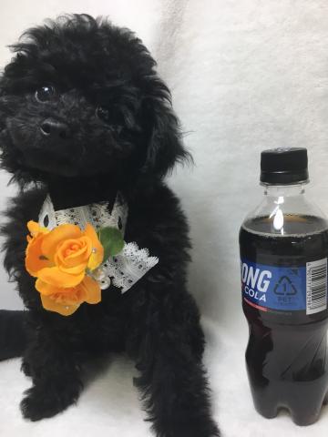 パパは、パズー君(ティーカッププードル、毛色はブラック、体重は2.3kg)