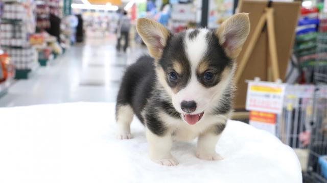 コーギー界では幻といわれるほど希少なブラックを基調としたコーギーちゃんが梅島店に登場!