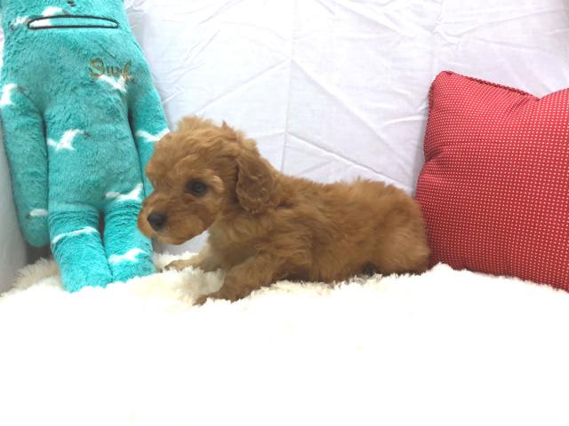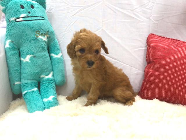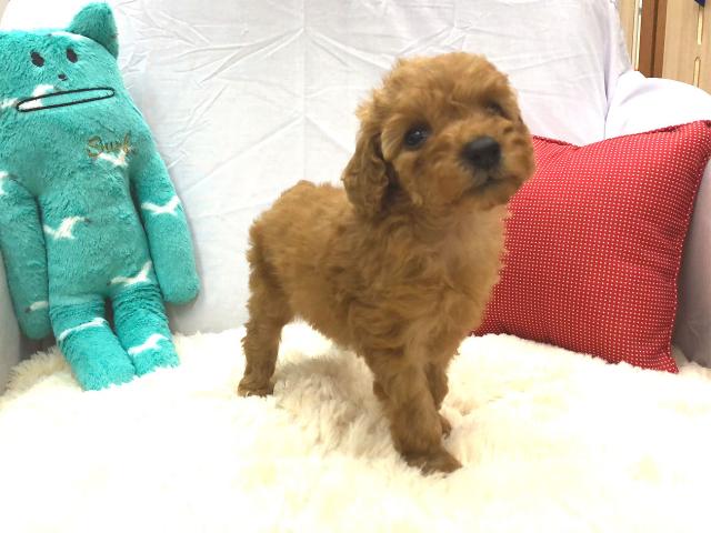 小ぶりな色素ばっちりの赤毛のトイプードルの女の子のご紹介です。両親ともにレッドの毛色なのでこのワンちゃんも濃いレッドの毛色をしています。
