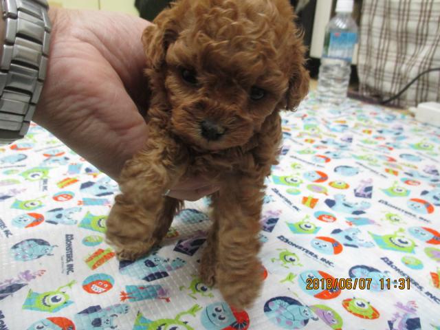 父親犬(ハウル君)2014.11.05生まれ、毛色はレッド、体重は1.8kgのティーカップサイズです。