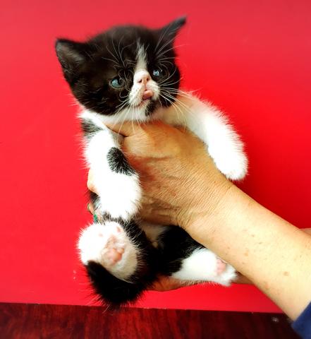 エキゾチック特有の鼻ぺちゃぶさ可愛いお顔をして、八割れ模様の男の子です♪(*´ω`*)