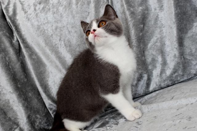 ブルー&ホワイトの八割れブリテッシュショートヘアーのご紹介!!