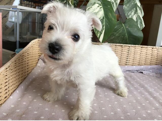 良血統で上質なウエスティー。愛らしいお顔の男の子です。