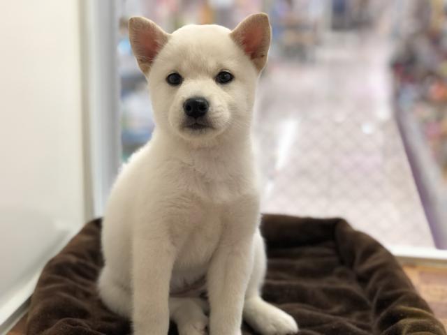 毛並みや毛艶も良く、白く美しい体色の柴犬です。