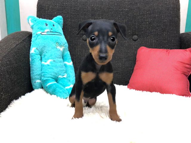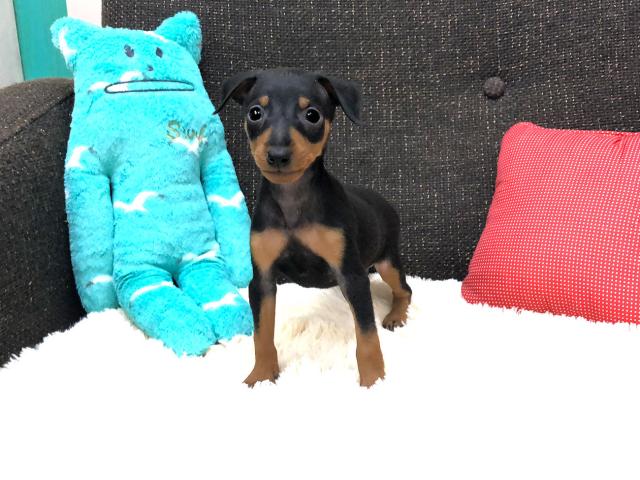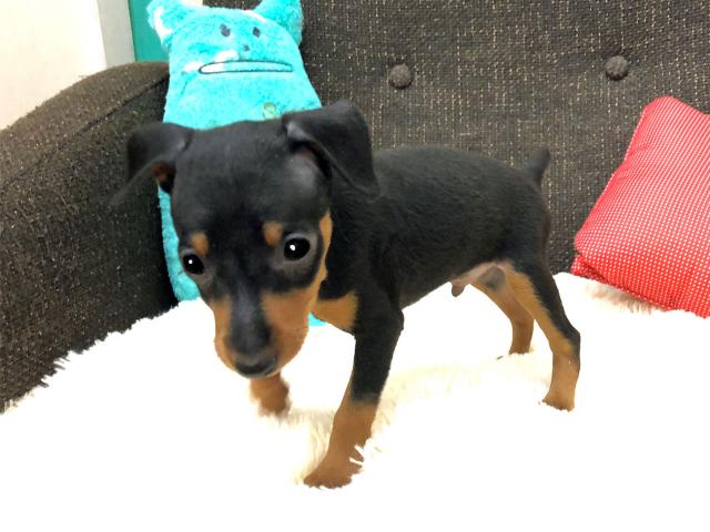 <b>当店で現在一番人気があるブラックタンの毛色のミニチュアピンシャーの男の子のご紹介です。</b>