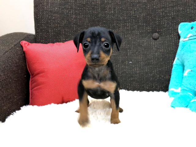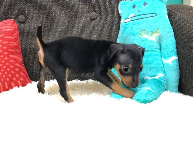 <b>当店で一番人気があるブラックタンの毛色のミニチュアピンシャーの女の子のご紹介です</b>