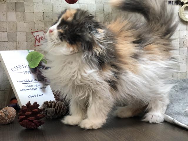 黒勝ちのキャリコですが、お目目パッチリで可愛らしい顔立ちです。