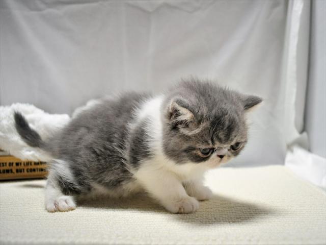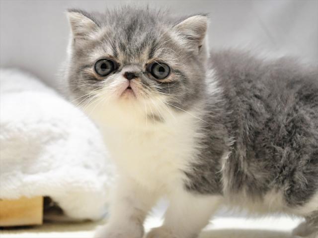 お顔がとっても可愛い【PKDクリア】のエキゾチックショートヘアーの子猫です。