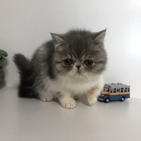 お顔がとっても可愛い【PKDクリア】のエキゾチックショートヘアーの子猫です。