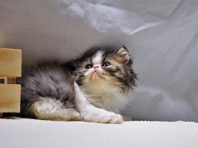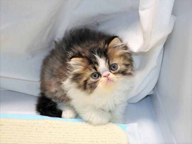お顔がとっても可愛い【PKDクリア】のエキゾチックロングヘアーの子猫です。