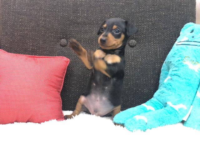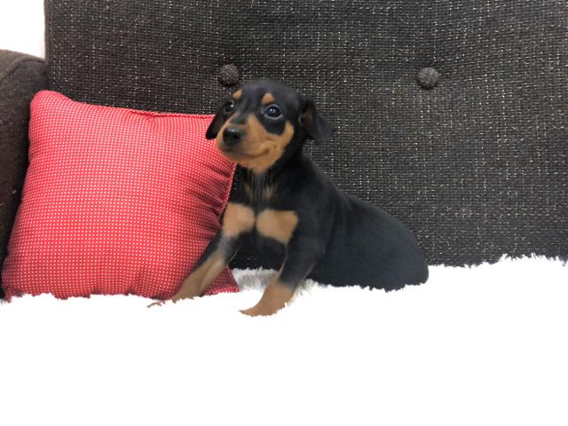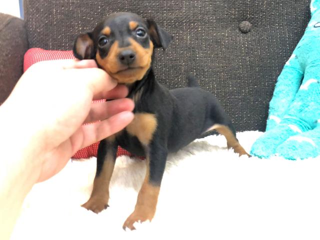 <b>当店で現在一番人気があるブラックタンの毛色のミニチュアピンシャーの男の子のご紹介</b>