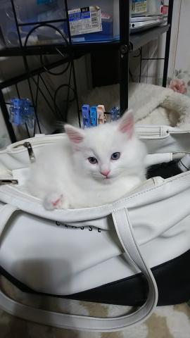 フワフワな真っ白ショー用猫です。