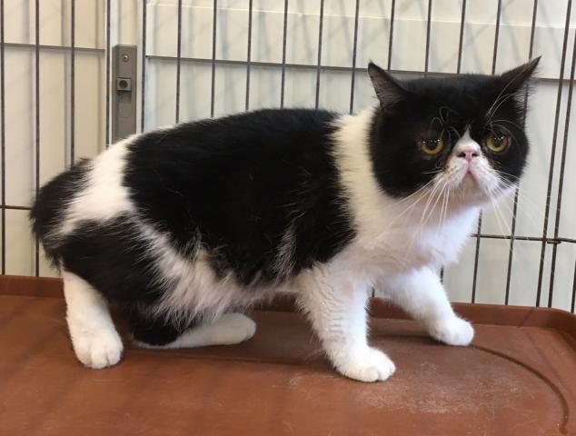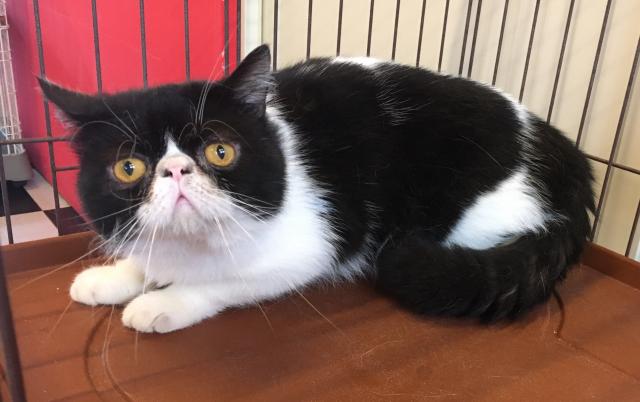 黒白の毛色をしたハチワレ模様がカッコイイ、エキゾチックショートヘアーの男の子です(*^^*)
