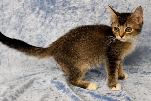被毛色は、ブラウンタビー&ホワイトで、顔も可愛さ満点!