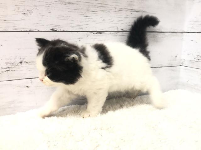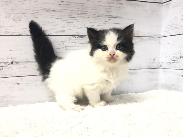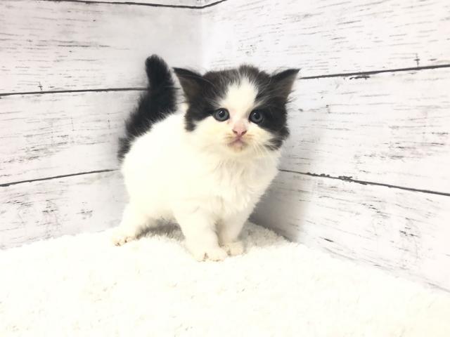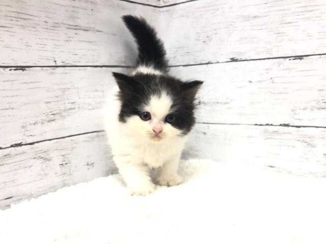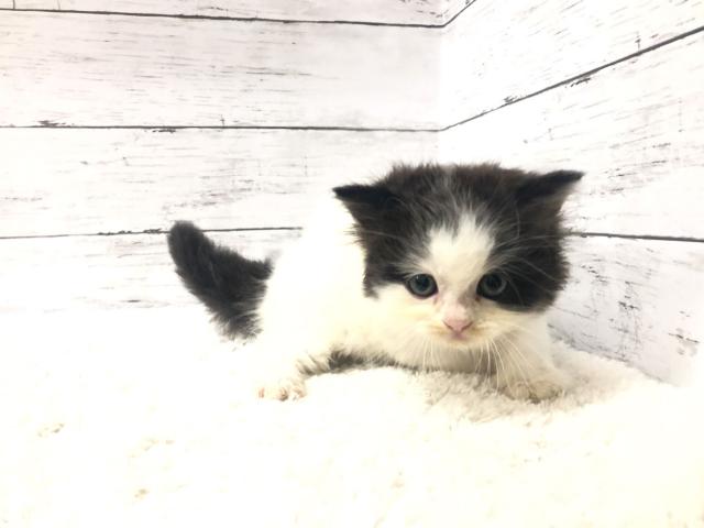 ペチャっと潰れたネコちゃんではありませんが、なんとも整ったイケメンフェイスをしているネコちゃんでしょうか(^^)毛色の模様の入り方もしっかりしているので、成長してもきれいな毛色を保ってくれるでしょう。おっとりとした性格をしているのでそれほどちゃかちゃかとしていないためとても飼いやすいですよ。ご飯もしっかり食べてくれており、トイレトレーニングも毎日実施しているので、いつでもお迎えいただけますよ♪