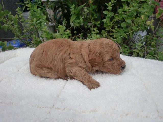とってもお顔立ちの良い美人ちゃん。とてもきれいなレッドカラーです。母犬はタイニーサイズです。