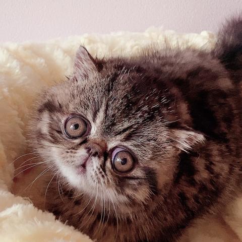 エキゾチックの猫さんに必要なお手入れ、目を拭いたり、コームでケアしたり 爪切りなど とっても大人しく 普段の仕草も優しい子なのでとってもやりやすい(一緒にすごしやすく)是非ご家族に迎えて頂けるオーナーさまを募集します
