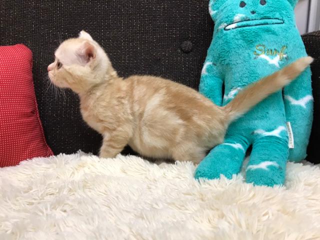 レッドタビーの毛色で食欲がとても旺盛なスコティッシュフォールドの女の子のご紹介です。