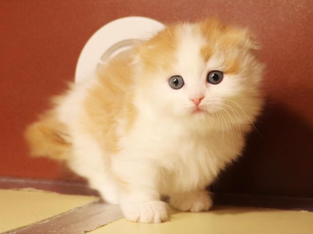 短足の女の子のご紹介です。お耳が垂れています。女の子で赤い毛が入るのはレアです。しかも短足でロングコートとなるととてもレアです。出産の時にお母さんがへその緒と一緒にしっぽを巻き込んで噛んでしまい、その後先の方が脱落してしっぽが短くなってしまいました。今では傷も癒えており生活に支障はありません。