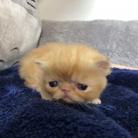 お顔がとっても可愛い【PKDクリア】のエキゾチックショートヘアーの子猫です。