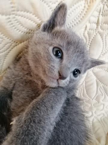 のんびりしていて元気なロシアンブルーの男の子です。