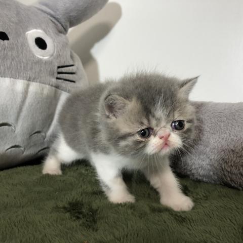 お顔がとっても可愛い【PKDクリア】のエキゾチックショートヘアーの子猫です。