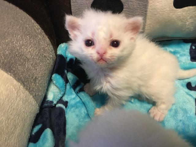 あとの兄姉は、ゴールドの目ですが、、彼女はブルーアイ。耳も異常無しです。。。 仮名は真っ白だったのと、3兄妹を全て(春=はる)と読める様にと、、(晴・ラテ)。とにかく美人と可愛いを合わせ持った顔立ちが羨ましい。。。体重も今や3兄妹と並ぶまでに成長。甘えた高音で主張します♪♪
