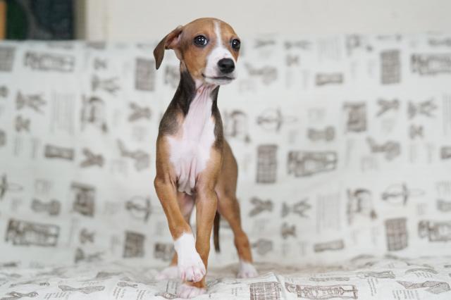 <b>とっても綺麗なレッド&ホワイトの毛色が特徴的なイタリアングレーハウンドの男の子のご紹介</b>