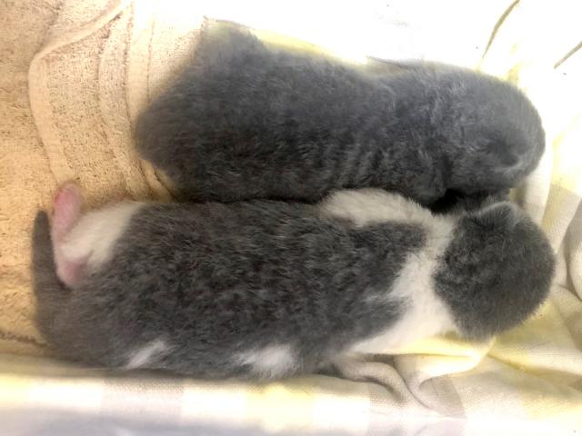 ・お母さん猫は体重が4kg台でブルー&ホワイトの毛色のたらちゃんです。・お父さん猫は体重が4kg台でブルーの毛色のししゃもくんです。